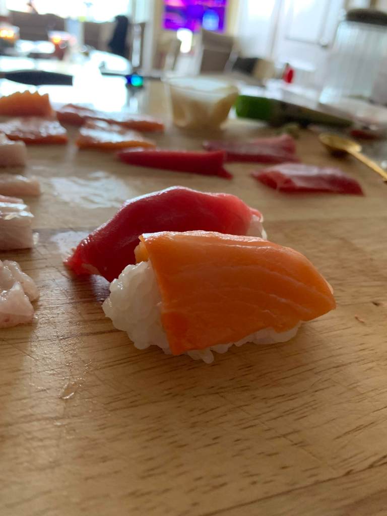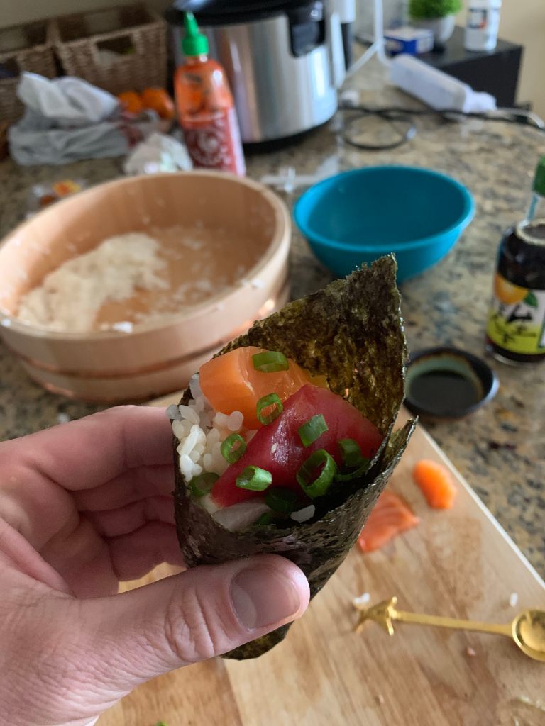 Sushi at home is always fun. We don’t get too fancy with a rolling mat anymore, we just throw together some handrolls and nigiri and eat as we go.