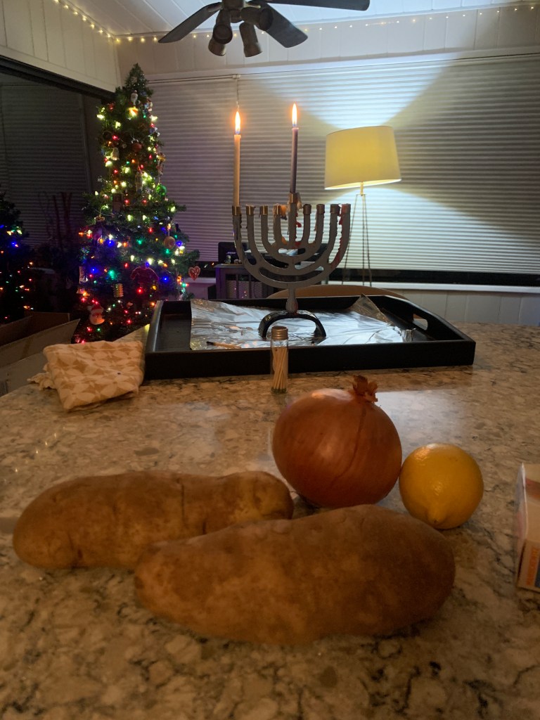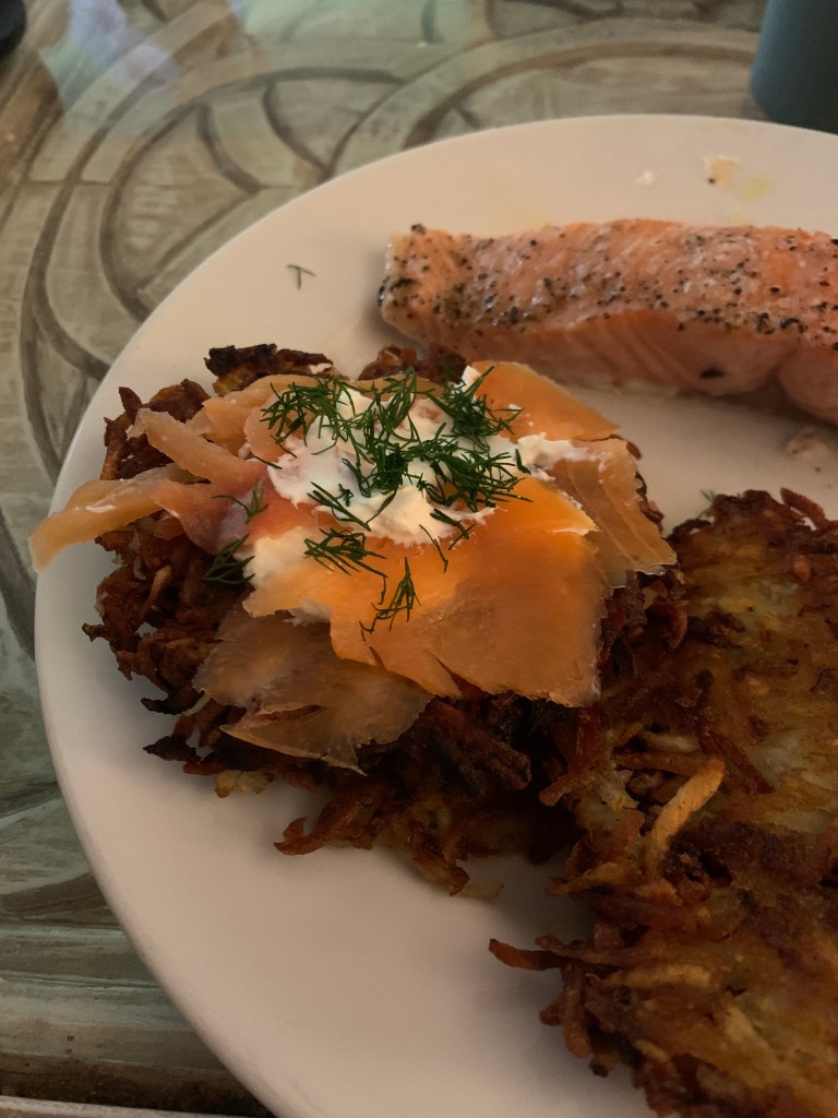 Traditionally you serve latkes with apple sauce or sour cream, but we opt for sour cream.